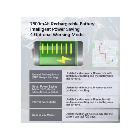 Dotato di batteria ricaricabile da 7500 mAh, garantisce fino a 30 giorni di standby (circa 15 giorni in uso).