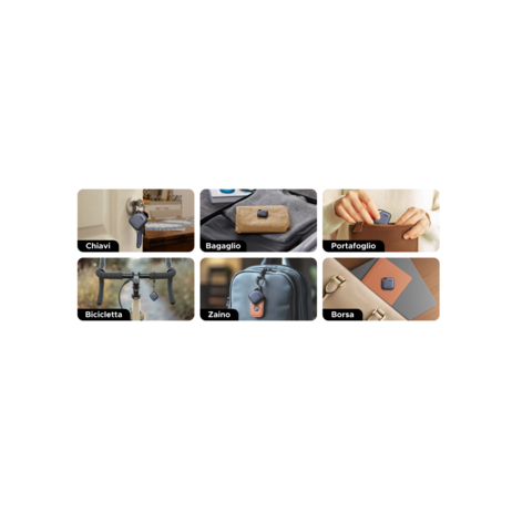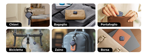 Consente di far suonare il tracker (80 dB) con l’app o Siri e di ritrovare oggetti anche lontani tramite la rete Apple Find My.